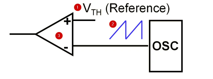 PWM技术通过将所需合成的波形(调制波)与锯齿波或三角波(载波)进行比较,来决定输出极性,通常是ON或OFF,从而控制开关元器件的通断。这一过程如图所示。
