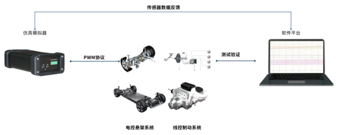 用于线控制动测试:模拟轮速 / 压力传感器 PWM 信号(频率 10Hz~10kHz,精度 0.1%),解析 ECU 指令并注入故障,验证制动安全策略;